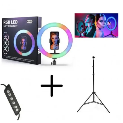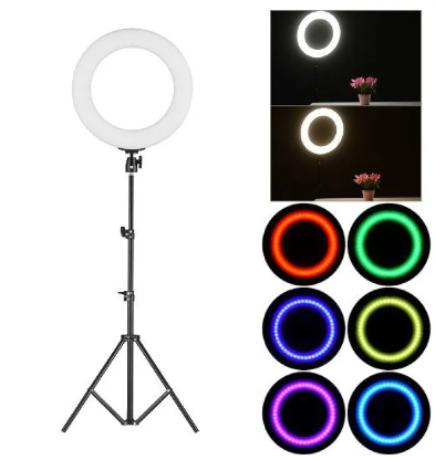 Product Details of 16 inch MJ36 RGB soft ring light Circle Photography Lighting 16 color Led RGB Ring Light with Phone Tripod Stand Model Number: MJ36 Power: 25W, 24W Voltage: 5v 2A Color Temperature: 3000K-5500K, 2700-9999K Dimension: 36CM/14inch Weight:0.7 kg Number of Phone Holder:3 Product Name: MJ36 RGB bendable arena light Material:Aluminum Alloy Metal Shape: Ring Shaped Power supply:DC 5V CRI: Ra>95 Light color:Cold White balmy Yellow mixed Lumen: 4800LM