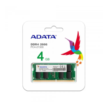 Product Details of ADATA 4GB DDR4 2666 MHz Laptop Ram Unsealed artifact are not returnable. For Laptop/Note Book Memory Type: DDR4 Density: 4GB Speed: 2666 MHz Complies with JEDEC standards RoHS compliant Supports Intel Skylake and Coffee Lake platforms, future-proof for Kaby Lake & Cannon Lake platforms Product Life Time warranty. Module Type: SO-DIMM Form Factor: Standard 1.18? height Standard: JEDEC Interface: 260 Pin CAS Latency: CL 19-19-19 DRAM blueprint / VCC: DDR4 STD 1.2V