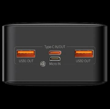 Product Details of BASEUS BIPOW DIGITAL DISPLAY 30000MAH POWER BANK 20W Battery capacity: 30000mAh/ Battery Type: Polymer lithium Rated capacity: 18000mAh (5V/3A) Energy about-face rate: ≥75% Supported protocols: PD, QC, FCP, AFC Input Micro: DC 5V/2A, 9V/2A Input Type-C: DC 5V/3A, 9V/2A Output Type-C: DC 5V/3A, 9V/2,22A, 12V/1,5A Output USB1/USB2: DC 5V/3A, 9V/2A, 12V/1,5A Total output: DC 5V/3A Max Product weight: 645g Product size: 153 x 68.8 x 41.9 mm CABLE : MICRO USB