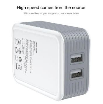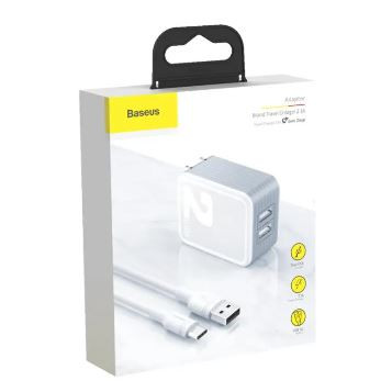 Product Details of BASEUS TZCAYJ-02 BRAND TRAVEL CHARGER 2.1A ADAPTOR WITH CABLE USB Port: 2*USB Port Applicable voltage: 100V-240VUSB1/2 output: DC5V-2.0ATotal output: 5V-2.1A Max Material: PC Product Weight: 48g Type C Data Cable: Plug: Type Length: 1mCurrent: 5V-2A / 9V-2A Product Weight: 25g Applicable equipment: Type C interface equipment