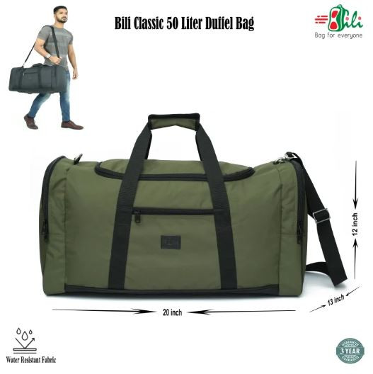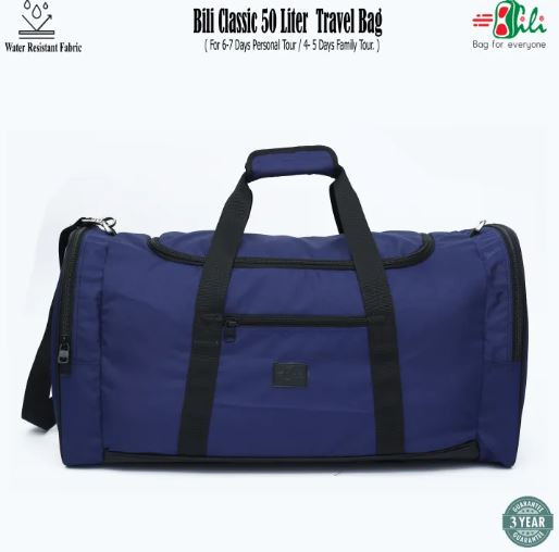 Product Details of Bili Classic Premium 50 Liter Travel Bag, Family Bag Dimension Length 20 inch, Width 13 inch, High 12 Inch Travel Bag for ancestors use. Build with waterproof nylon fabric. Dustproof and scratchproof. Washable Suitable for a continued journey. Smart and bright outlook. Organize all your clothes in one bag. 5 ancillary pockets and One capital chamber. Huge amplitude with multi usability.
