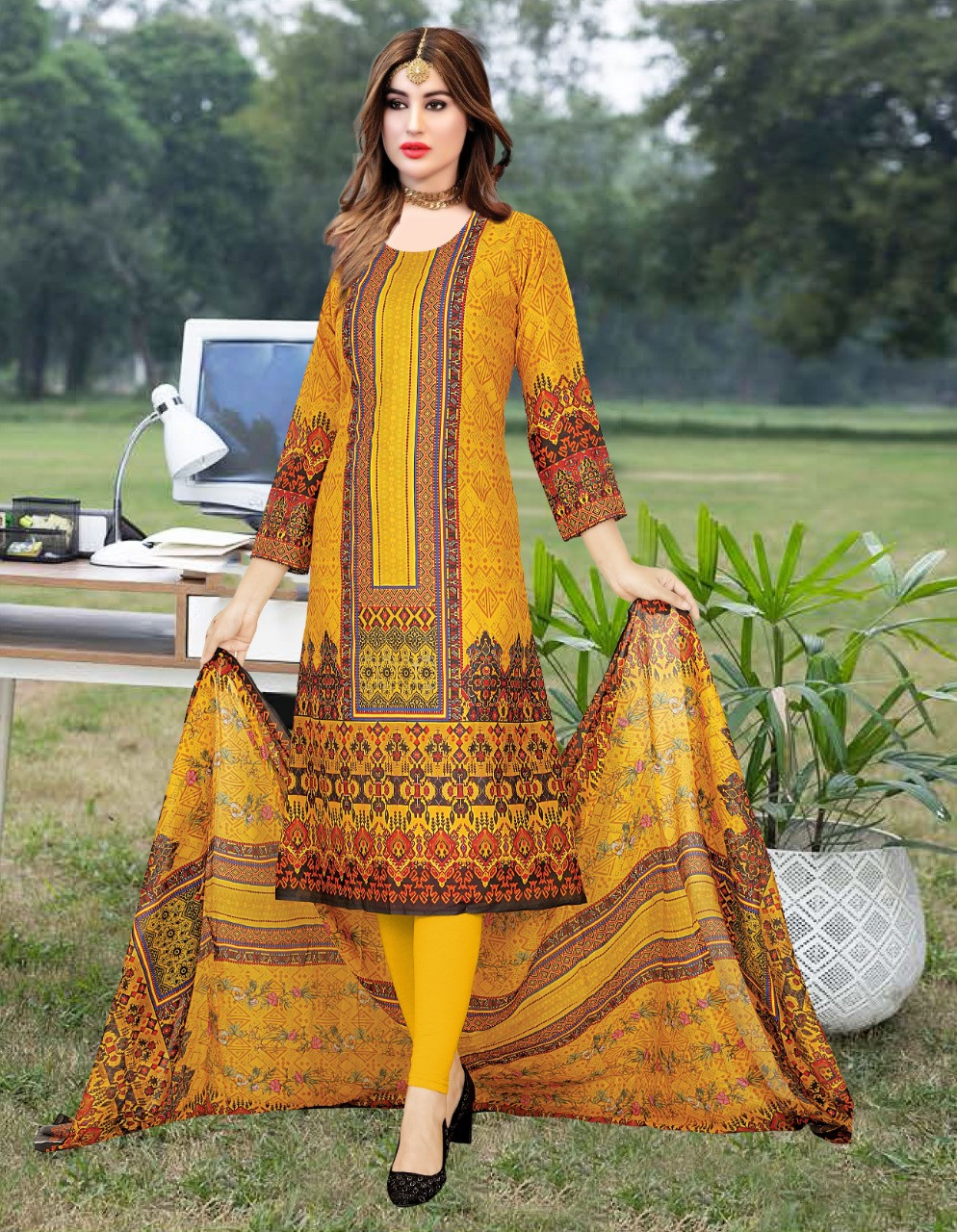 Digital printed 100% pure cotton unstitched lawn three piece