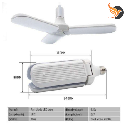 Specification of Foldable Fan Blade LED Light Bulb PIN SYSTEM