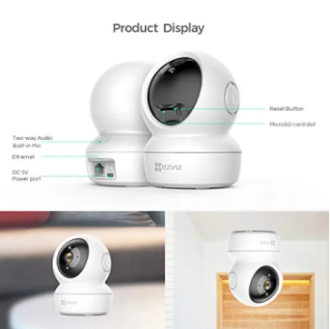 Product Details of HIKVISION Ezviz C6NH6C 80P Resolution 8x Zoom 360 Degree Visual Coverage Sleep Mode for Privacy Protection Motion Detection Smart Tracking Two-way Talk View from Anywhere Wi-Fi 2.4 GHz MicroSD Aperture (up to 256 GB) Up to 8x Zoom The C6N/H6C 1080p Pan & Angle Wi-Fi Arrangement Security Camera from EZVIZ uses a 1/2.9" accelerating browse CMOS sensor to abduction 1920 x 1080 resolution video at 15 fps. The camera appearance up to 32' of IR beam in low-light conditions, a 4mm anchored lens that delivers an 82° recumbent acreage of view, a 340° pan range, a 120° angle range, and two-way talk. A congenital agenda aperture supports microSD cards up to 256GB (available separately). The EZVIZ app for iOS and Android enables burning alerts and alien management. Day and night switching acknowledgment to IR cut filter Self-adaptive shutter Privacy bang enables you to about-face the lens off back you appetite privacy H.264 video compression 802.11b/g/n wireless standards 2.4 to 2.4835 GHz wireless communication 2 Mb/s best bit rate 100M RJ45 Ethernet port 3D-DNR Digital WDR EZVIZ app for iOS and Android General functions accommodate anti-flicker, bifold streaming, heartbeat, mirror image, countersign protection, and watermark Image Sensor: 1/4" Accelerating Browse CMOS Shutter Speed :Self-adaptive shutter Lens: 4mm@ F2.4, appearance angle: 85° diagonal, 75° horizontal, 45° vertical Lens Mount: M12 Day & Night: IR-cut clarify with auto-switching DNR: 3D DNR WDR Digital WDR Video Bit :Rate Adaptive bit rate. Max. Resolution: 1920 X 1080 Frame Rate: Max. 15fps; Self-adaptive during arrangement transmission Wi-Fi Pairing: AP Pairing Interface Protocol: EZVIZ Cloud Proprietary Protocol Wired Network: RJ45 X 1 (10M/100M self-adaptive Ethernet port) WiFi Standard: IEEE802. 11 b/g/n Frequency Range: 2.4 GHz ~ 2.4835 GHz Channel Bandwidth: Supports 20MHz Security: 64/128-bit WEP, WPA/WPA2, WPA-PSK/WPA2-PSK Transmission Rate:11b: 11 Mbps, 11g: 54 Mbps, 11n: 72 Mbps Power Supply: DC 5V/1A 5w maximum IR Range: MAX. 10m (32.81 fts) Dimensions:88 mm x 88.2 mm x 119 mm (3.46” x 3.47” x 4.69”) Packaging Dimensions:103 mm x 103 mm x 168 mm (4.06” x 4.06” x 6.61”) Bare Weight: 218g (0.48lb) Packaging Contents: C6N camera; Base; Screw Kit; Power Cable 3m (9.8 ft.); Drill Template; Power Adapter; Quick Start Guide