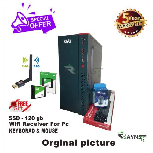 Product Details of Intel Core i7 8MB Cache RAM 8GB HDD 1000GB Graphics 4GB Free 120Gb SSD Free Wi-Fi receiver Free Standard USB Keyboard Free Standard Optical Mouse Free Power Cable Processor : Intel Core i7 2.80 - 2.93GHz 8MB Cache RAM : RAM 8GB DDR3 Any Brands Hard Disk : 1000GB WD/Seagate/Toshiba/Hitachi/Samsung (or Others Brands) Motherboard Brand : Intel/Gigabyte/Foxconn/Esonic/Speed Or Any Others Brand Motherboard Chipset: Intel Casing : GIGASONIC / OVO / EROCK / CIRCLE / STAR SONIC / DBM / Win Tech Or Any Others Brand (Casing can be altered from the accustomed pictures) Power Supply : ATX 500w Graphics: 4GB (Internal External) Processor Brand : Intel Operating System : Win 10 Pro 64 Bit Free DOS Weight : Starting at 5 kg Warranty : 5 Years Service Warranty (Excluding Casing, Power Supply , Cooling Fan and keyboard Mouse)