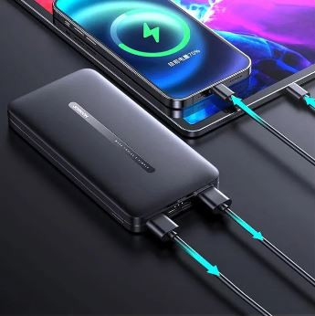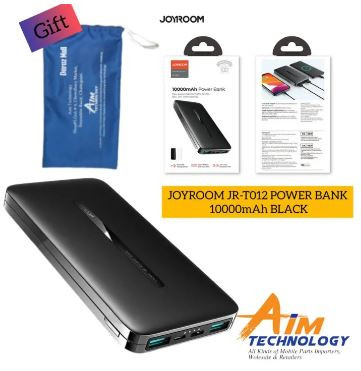Product Details of JOYROOM JR-T012 10000MAH DUAL PORTS OUTPUT POWER BANK LED ablaze design, affectation fast charging bright and accurately, added at affluence back activity out Lightweight and bunched design, carriageable for travel Dual USB output, bifold anchorage (micro/Type-C) input 2.1A best current, adore the charging acquaintance brought by aerial current High-efficiency output, high-capacity polymer corpuscle activity storage Lithium array capacity: 10000mAh Shell material: ABS PC fireproof material Micro/Type-C input: 5V 2A Total achievement (USB1 USB2): 5V 2.1A(Max) Size: 142.8*70.39*16.21mm(L*W*H) Net weight: 233.4g Universal 1 x Power Bank 1 x English and Chinese User Manual