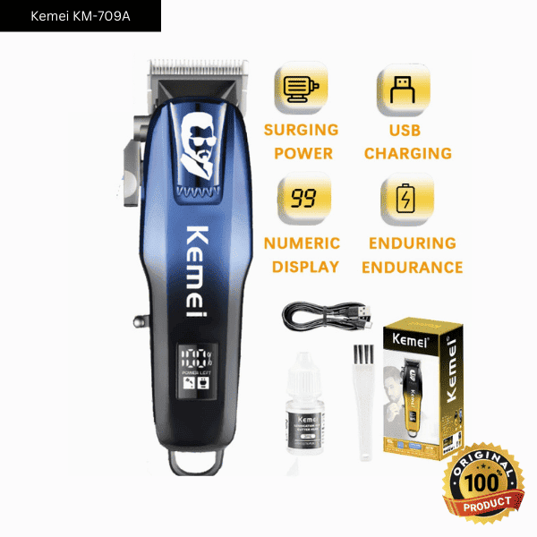 The Kemei K-M 709A Hair Clipper and Trimmer is a powerful and versatile grooming tool designed for both home and professional use. Whether you need to trim, cut, or style your hair, this all-in-one clipper and trimmer delivers precision and comfort. Equipped with sharp stainless steel blades, it ensures smooth and efficient haircuts without pulling or tugging.
