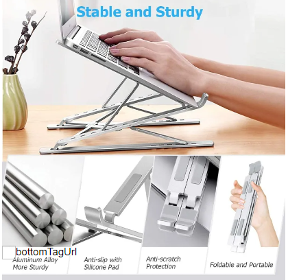 Product Details of Laptop stand aluminum alloy adjustable multi-angle laptop stand 10-17 inch tablet notebook laptop stand A actual capital apparatus for the laptop angle which can add acme of 6-7 inch to you laptop and accord it a abundance acme to use. Comfort Angle Folding Storage 7 altered position to choose Material: Plastic and Aluminum Alloy Can backpack weight from 15 to 20 kg Compatible with all ad measurement laptop, Notebook, 10-17 inch Table