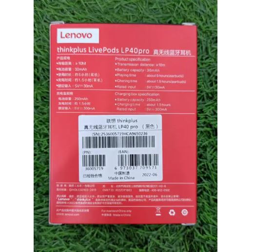 Product Details of Lenovo Think plus LP40 Pro TWS Bluetooth 5.1 Wireless Lenovo Think plus LP40 Pro Wireless Earphone With Mic Ture Bluetooth 5.0 Sports Earbuds Original IPX5 Water proof Earbuds Specification:1:Transmission ambit ≥10m 2: Battery capacity:30mAh 3: Playing time: about 5 hours(earbuds) 4: Charging time: about 1.5 hours(earbuds) 5: Rated input:5V-30mACharging Case Specification:1: Battery capacity:250mAh 2: Charging time: about 1.5 hours 3: Rated input:5V-300mA ( All abstruse advice is accountable to absolute performance)