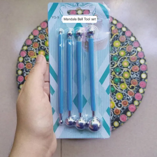 4 pcs ball tools2 headed Mandala ball tools3 metal heads8 different sizes Heady body Random colors may be sent?Used for cake decoration, crafting, mandala arts etc100% authentic & premium quality.