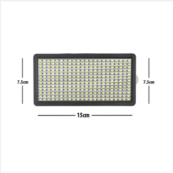 Product details of Osaka OS-308 Pocket LED Pro Video Light Set with Battery & Charger Model Number :Bi-Color Dimmable LED Video Light OS-LED-308 Pocket LED Slim for All DSLR Video Cameras YouTube Video tiktok Photography Shooting Without Battery Charger Suitable For :Event Photography, Photo Studio, Photo Shoots, Ambiance Photography Mount Type :Hot Shoe Mount Compatible With :ALL VIDEO CAMERA, ALL VIDEO STILL CAMERA Number of LED lights :308 Color Temperature :3200K (Warm White), 5600K (Cool White) Light Color :White Illumination :2650 lx Dimmer :Yes Adjustable Color Temp :Yes Power Features Power Source :AC Adaptor, Battery Operated Batteries Included :No Power Consumption :18 W Power Requirement :9V/5amp AC/DC Adapter Dimensions Width :17 cm Height :13 cm Depth :4 cm Weight :450 gm