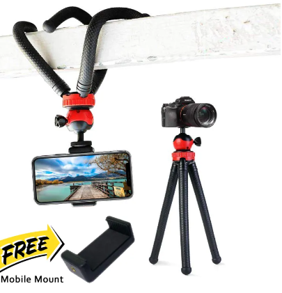 Product Details of Portable Flexible and Universal Mobile Phone, Digital Single Lens Reflex Camera and Go pro Flexible Octopus Tripod Model Number: Adjustable Tripod 1 Folded Length: 305 mm Extended Length: 305 mm Weight: 300 g Material: Rubber Type: Adjustable Tripod Load Capacity: 1.2 KG Portable and adjustable design Compatible with agenda cameras, smartphones, and Go Pro Ideal for selfies and capturing different angles