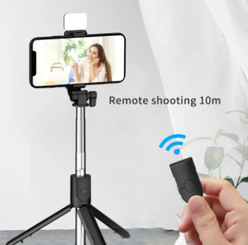 Product Details of R1s Adjustable 4 in 1 Multi functional Selfie Stick & Tripod with Selfie Light & Wireless Bluetooth Remote Control 4 in 1 Selfie Stick with Bluetooth Remote Control and Tripod height: 70cm Product Size: 185 X 45 X 38mm (7.28 X 1.77 X 1.5 inches) Product Weight: 130g Packing Size: 197 X 49 X 40mm (7.76 X 1.93 X 1.57 inches) Package Weight: 155g Mobile Phone Clip Distance: 58-92mm (2.28-3.62 inches) Stretching Height: 70cm (27.56 inches) Desktop Tripod Status: 31-66cm (12.2-25.98 inches) Fill Light Mode: White Light/2 Gear Number of Lamp Beads: 4x LED 2835 Current and Voltage: CR 1632/70mAh (Replaceable)