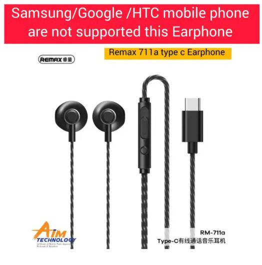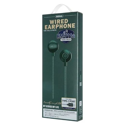 Specification REMAX RM-711a TYPE-C Earphone call and music wired headset Brand: remax SKU-231217EA672 What's in Box-earphones