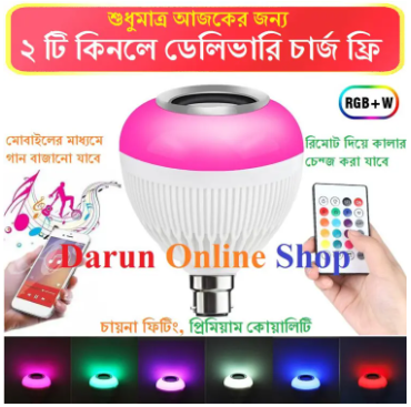 Product Details of Remote Control Led Bluetooth Speaker Music Bulb B22 Item Name: Led Music Bulb With Bluetooth & Speaker Light Color : Multi Colors Light Source: LED Compatible Product: Universal Bluetooth Version: V4.2 Supported Profile: A2DP Base Type: B22 Rated power: 12W Speaker Power: 3W Special Feature: Super Bass, Portable, Wireless Voltage: 100-240V/50Hz-60Hz Bluetooth distance: Around 10 meter Remote ambassador : 24 keys type Material : PC/ABS