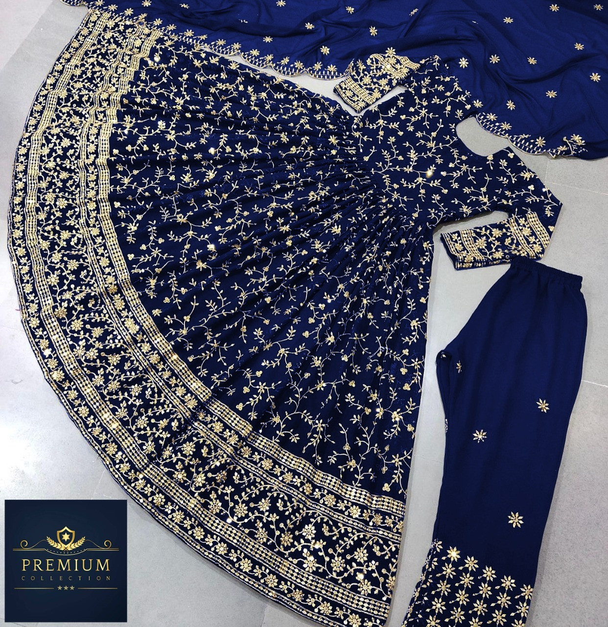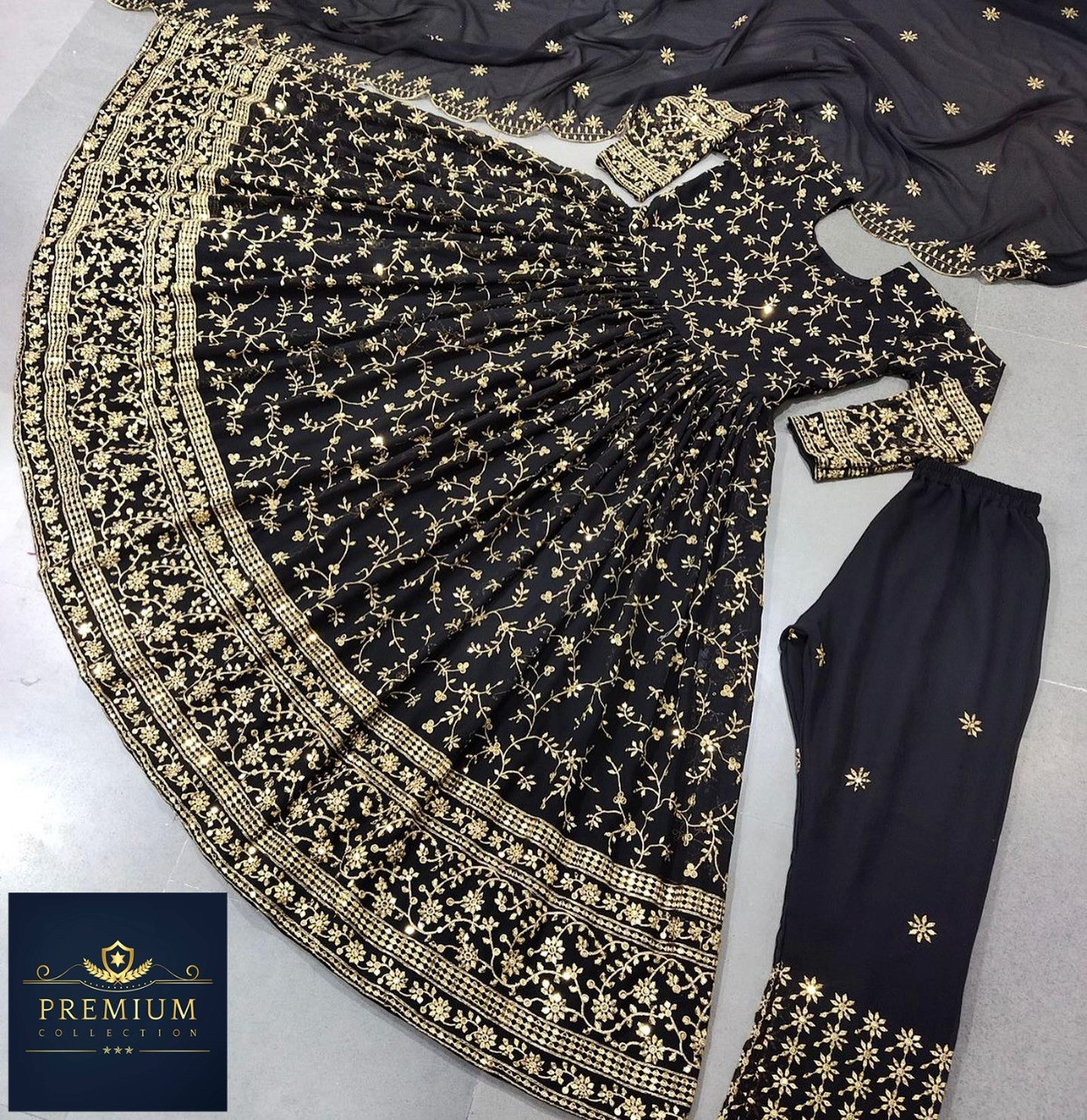 Type – Semi Stitch Body Material - Weightless Georgette Pajama - Pure Butterfly Embroidery Work Veil - Weightless georgette embroidery work Body length- 50 inches Circumference - 120 inches Body size- 52
