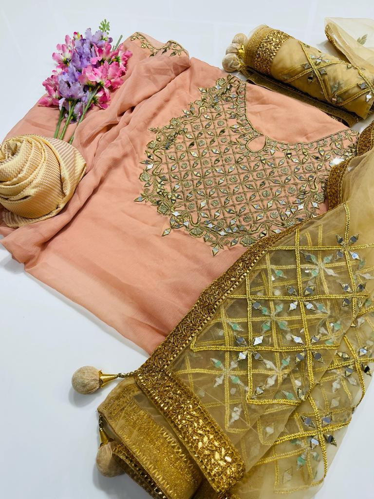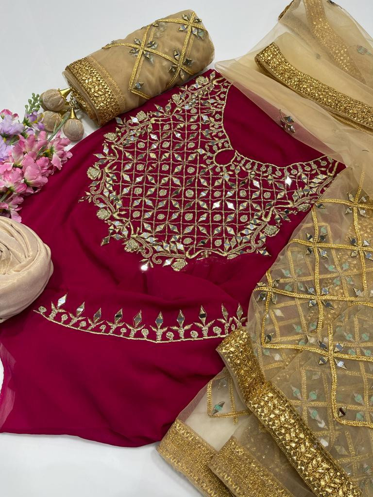 Semi Stitched Georgette Embroidered Three Piece