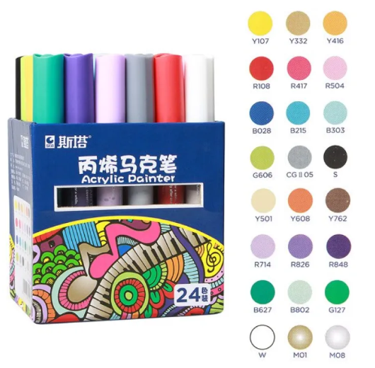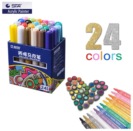 Product Details of STA 24 Color Creative Acrylic Marker Pen,Highlighter Waterproof Hand DIY Paint Marker Pen Product details of STA Acrylic Paint Markers Pen-24 Colours24 Colors Acrylic Paint Marker PenFine Tip Markers for Painting on Glass, Ceramic, Stones, Metal,