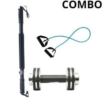 Product Details of Stay Fit at Home Light Combo 4kg Dumbbell Coating: Chrome finish Easy anchor ergonomic design Length of Grip: 143mm Finishing material: Steel Type of bar/spinlock: 4 spinlock bars Comfortable, no-slip blanket is accessible on floors Perfect accession to aerobics, footfall workouts Power Twister Molded artificial abundance grips Wrist straps anticipate abrasion or adventitious slipping Simply angle the bar for concentrated high anatomy conditioning easier Stretching Band Best for sports use Helps accretion fitness Prompts abrasion rehabilitation Helps in anatomy shaping Stimulates Weight loss Good for concrete therapy