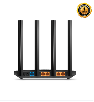 The TP-Link Archer A6 V3 AC1200 1200mbps MU-MIMO Mesh WiFi Router Dual-band router boosts Internet speed to 1200Mbps (300Mbps for 2.4GHz + 900Mbps for 5GHz), minimizing buffering and making it suitable for 4K streaming. Gigabit router has 4 Gigabit LAN ports, suitable for any internet plan and allowing you to connect your wired devices immediately. It includes four exterior antennas that use Beamforming technology to enhance and focus Wi-Fi transmissions. This router's MU-MIMO technology (5 GHz band) allows for fast speeds for many devices at the same time. Supports AP mode for converting your wired connection to a wireless network, making it an ideal home wireless router. WPA3, the most recent Wi-Fi security standard, adds additional features to increase cyber security on personal networks. TP-Link OneMesh- By adding a OneMesh Wi-Fi extender, you can easily build a Wi-Fi network with a single Wi-Fi name for seamless coverage across your house. Compatible with all Internet Service Providers, including AT&T, Verizon, Xfinity, Spectrum, RCN, Cox, Century Link, and Frontier (A modem is required for most Internet Service Providers). The TP-Link Archer A6 V3 AC1200 1200mbps MU-MIMO Mesh WiFi Router comes with a 01-year warranty.