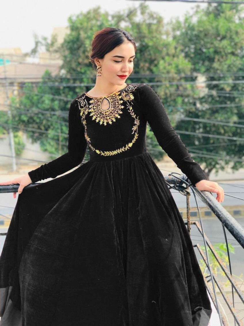 Velvet dress with embroidery work