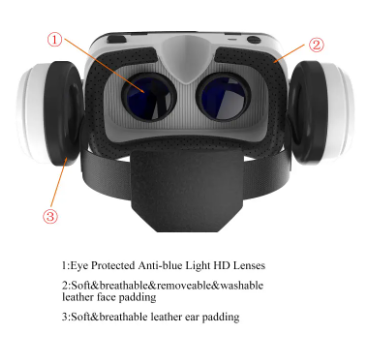 Specification of VR SHINECON Bluetooth Headset Compatible with iPhone & Android Phone Virtual Reality Brand-No Brand SKU-231217EA1179 What's in Box-Only Virtual Reality Box