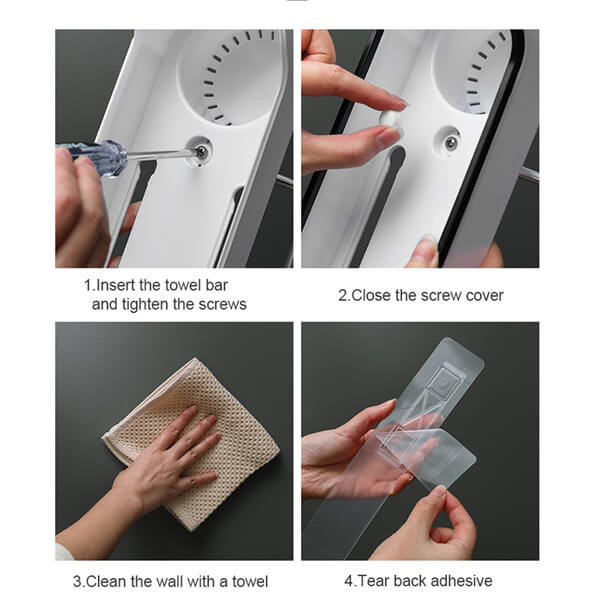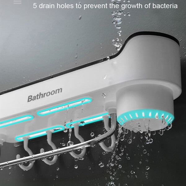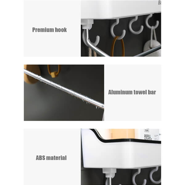 Product Details of Wall-Mounted Bathroom Organizer Rack Features Simple and avant-garde appearance seamlessly chip into about any fast baptize draining, made of aerial affection PP environmentally affable materials, unlike stainless animate bath shelf will oxidize. No Drilling, no nail, Just defended with adhering strip, don't anguish about it will falling down. Independent agenda aperture architecture for best beard dryers. Perfect for autumn home items such as lotions, make-up, nail polishes, face towels, cleansers, soaps, shampoo, and abundant more.