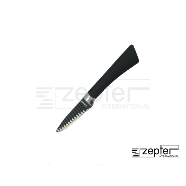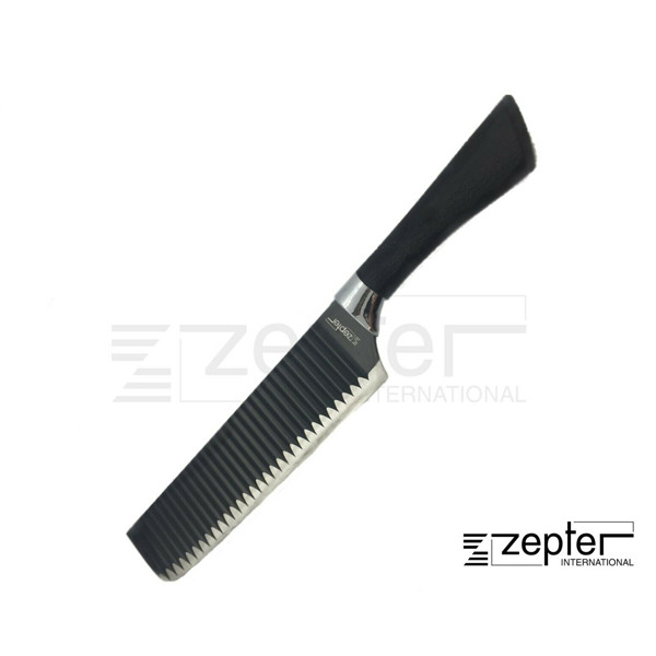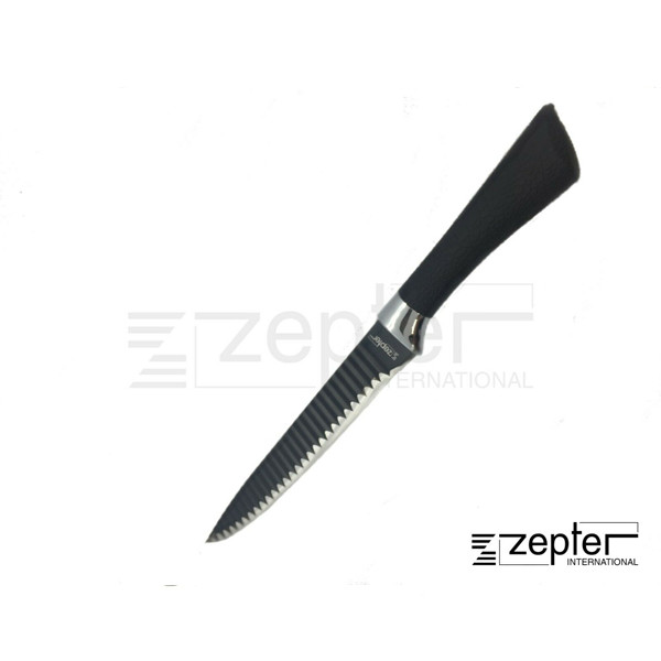Product Details of Zepter International 6 Pcs Kitchen Knife Set A able kitchen knife set that includes 4 knives, 1 scissor and 1 bowl peeler. A accomplished set of kitchen knives The ergonomic non-slip handle feels adequate to handle A above affection material, rust-proof, accessible to use and clean Robust, it performs able-bodied in slicing, dicing, chopping Includes: Chef Knife, Carving Knife, Small Knife, Peeling Knife, scissors and bowl peeler.